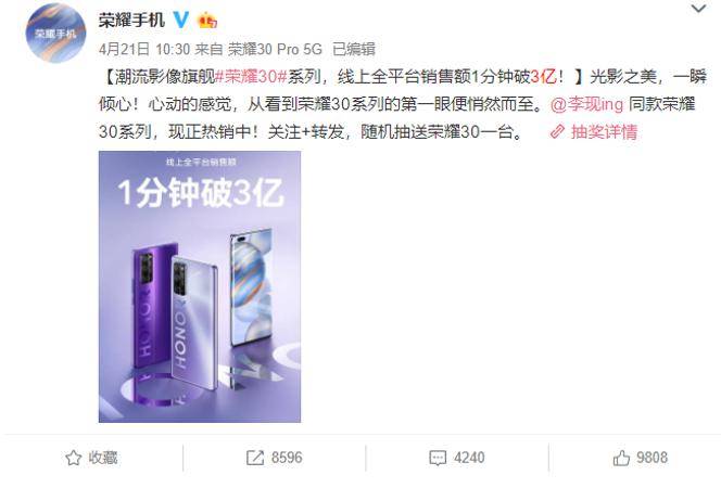 4月21日,荣耀30系列首销创造了1分钟破3亿的销售新纪录!能够取得如此骄人成绩,在于荣耀30系列,不仅强化了性能、续航,还在外观设计和拍照上更近一步,全系搭载的50倍潜望式超稳远摄长焦镜头,带来了50倍数字变焦拍照能力,影像奥斯卡DXO拍照位列世界第二。