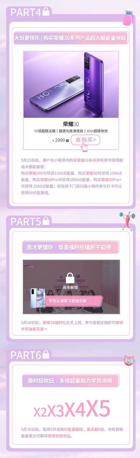 原标题:重大更新!荣耀30能量站全面升级,实力应援创造营2020