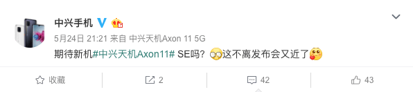 【PChome手机频道资讯报道】5月24日,中兴手机官微正式官宣即将发布的中兴天机Axon 11 SE,表明该机可能在近期发布。这条“字少事大”的微博并没有曝光出太多关于中兴天机Axon 11 SE具体配置的信息,因此我们查询了一下中兴天机Axon 11 SE的工信部入网信息,了解了一下可能的配置。