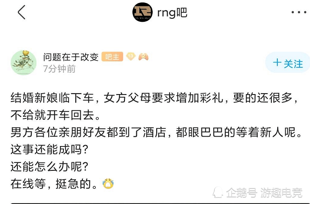 随后还有另一个反转,是RNG的小吧主站了出来,说了两个字:成了!结合RNG大吧主昨天的动作,很容易就让人联想到是RNG圣枪哥成了。PS:能当上战队吧主的都是粉丝头子或者跟工作人员有联系,知道的消息会比我们外人多一些。