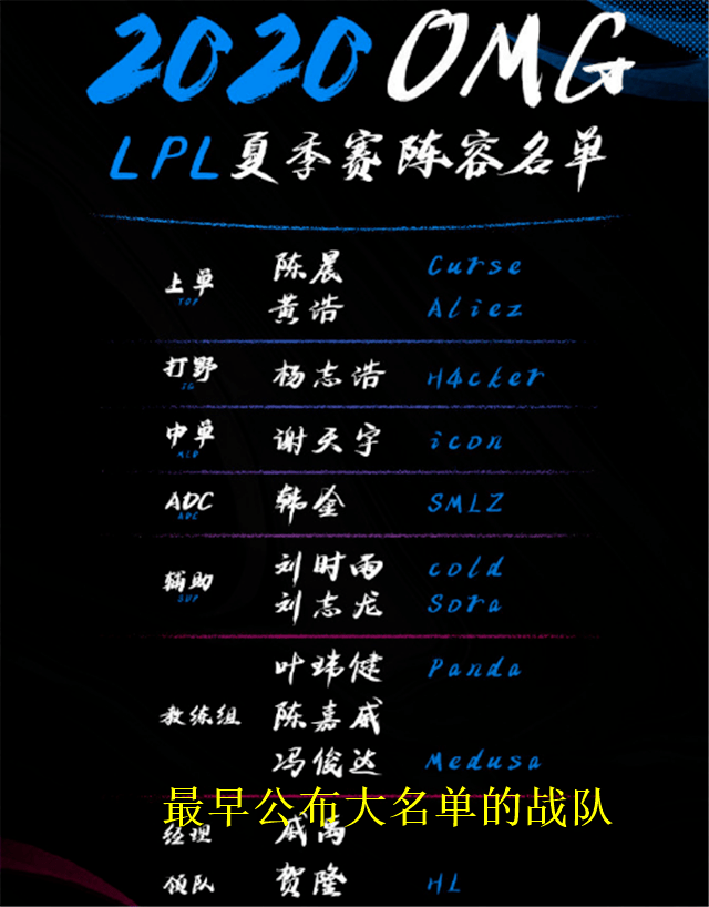 v5战队的aliez离队之后,迅速关注了omg,随后,omg战队就公布了他们的夏季赛大名单,可以说是最早公布名单的战队了。