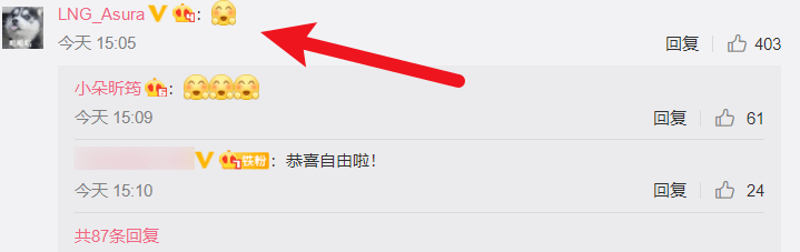 不仅如此,阿修罗本人也评论了这个LNG前工作人员的动态,不过这只是一个开心的笑脸,意思大概也是很开心的意思。重要的是,阿修罗不去转发评论LNG的官博,而是跑到这里回复这个工作人员的话,那么两者的关系肯定很不错,然而他们这样的做法恰恰好证明LNG内部有矛盾!