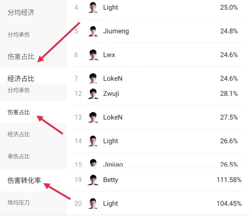 然后再看灯皇,经济占比25.0%,排在20名AD的第四名,伤害占比26.6%,排在第14名,伤害转化率104.45%,排在第20名。这是什么类型的AD就不多说了,两个AD的数据对比完全可以看得出完全不是一个级别的选手。LNG春季赛的成绩是倒数第二,仅次于V5,这种成绩的战队能有阿修罗这种级别的AD可以说是非常幸运的一件事,没想到LNG主动把大爹给放走了,就留了一个灯皇,不知道LNG到底在想些什么。