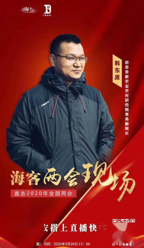 ▲拼多多新农业农村研究院常务副院长韩东原做客《海客两会现场》
