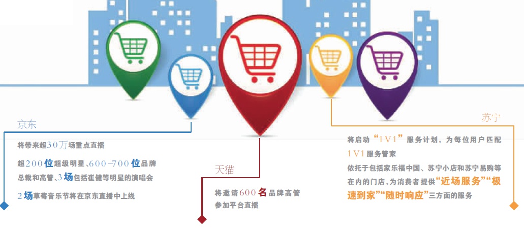 最值得注意的,就是两者同时公布了大促期间的直播计划。京东表示,“6·18”期间将带来超30万场重点直播,超200位超级明星、600-700位品牌总裁和高管、3场包括崔健等明星的演唱会以及2场草莓音乐节将在京东直播中上线。