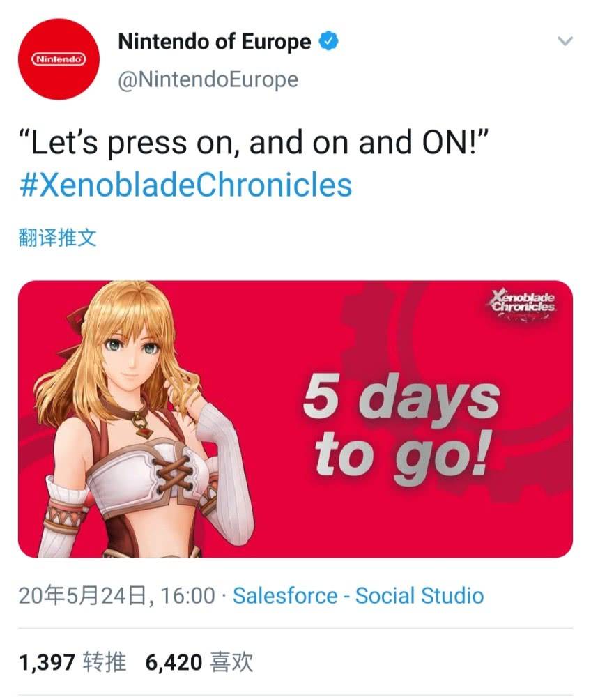 欧任官推发布异度神剑倒计时,5月29日异度神剑即将来临。
