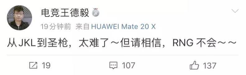 在删掉上一条微博后,RNG高管发了最后一条圣枪哥相关。