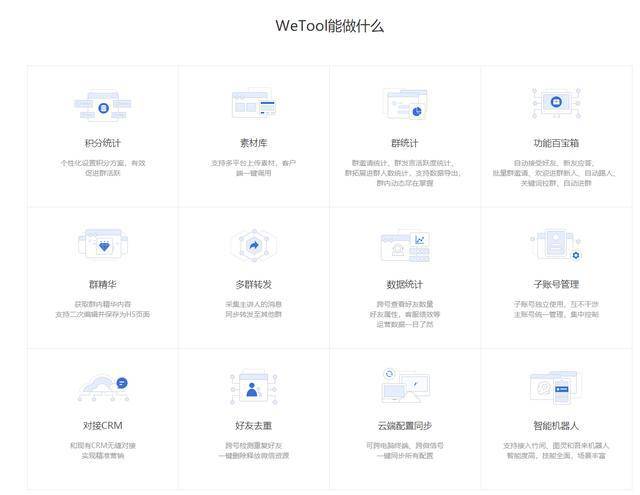 Wetool是一个微信社群管理工具,从官网上介绍来看,它的功能比原始版微信强太多了,支持群统计、自动接受好友、批量群邀请、自动踢人、多群转发、好友去重、智能机器人等等,如果是做微商或者微信营销的,这个软件绝对好用,而且还有更高级的企业版,功能更多,当然会收费。