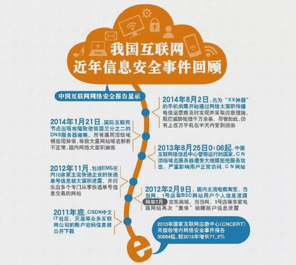 在“棱镜门”爆发的前后一年的时间里,中国爆发了数次大规模的信息安全事件。