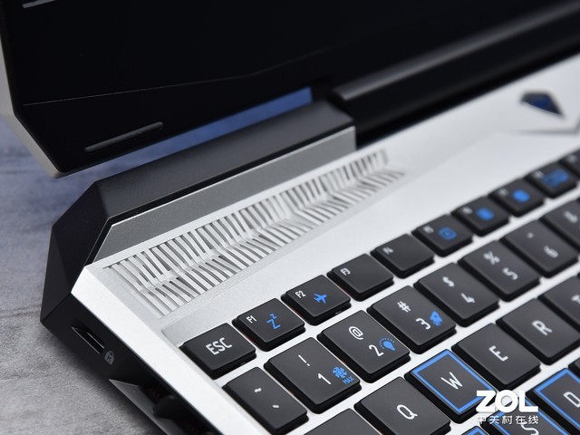 此外还有一些小设计值得一提,比如C面键盘上方有对称的辅助进风口、底部扬声器位置涂上了蓝色,这些细微的地方能够看出设计人员对于产品的用心。