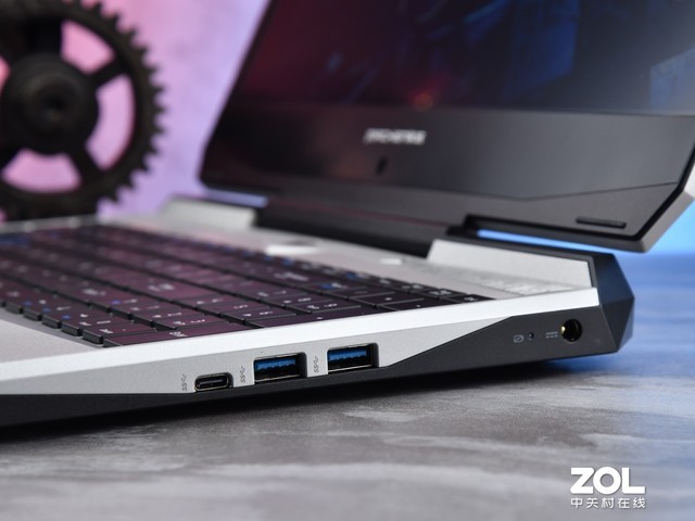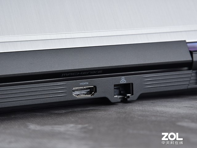 接口方面,机械师F117-V的接口分布在左右两侧和后侧,其中左侧接口分别为锁孔、USB2.0、SD读卡器和3.5mm耳麦二合一接口;右侧接口分别为适配器接口、电源指示灯、3×USB 3.1 Gen1和Type-C,该Type-C支持数据传输和视频输出(DP1.4);后侧接口分别为HDMI2.0和RJ45。机械师F117-V的接口比较全,使用方便。