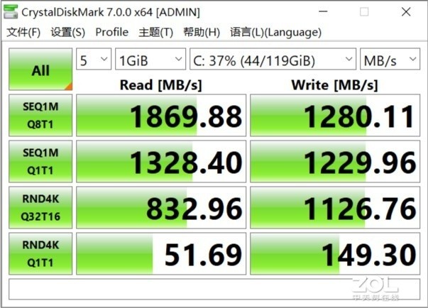 可以看到,50轮测试中最大值为1327.89,最小值为1264.94,反映整体趋势的中位数为1306.655,在我们的数据库中,1306.655的中位数足以领先所有移动标压/低压处理器了。