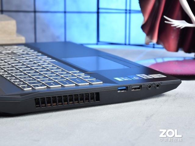 外观上,笔记本的A面为金属,左右两侧各有两处采用了非常微小的圆形镂空开孔,开机后会从中发出红光。整机的重量在2.7kg左右,厚度在30mm左右,对于一款以性能见长的游戏本来说,在重量和厚度上做出一些让步是在所难免的。