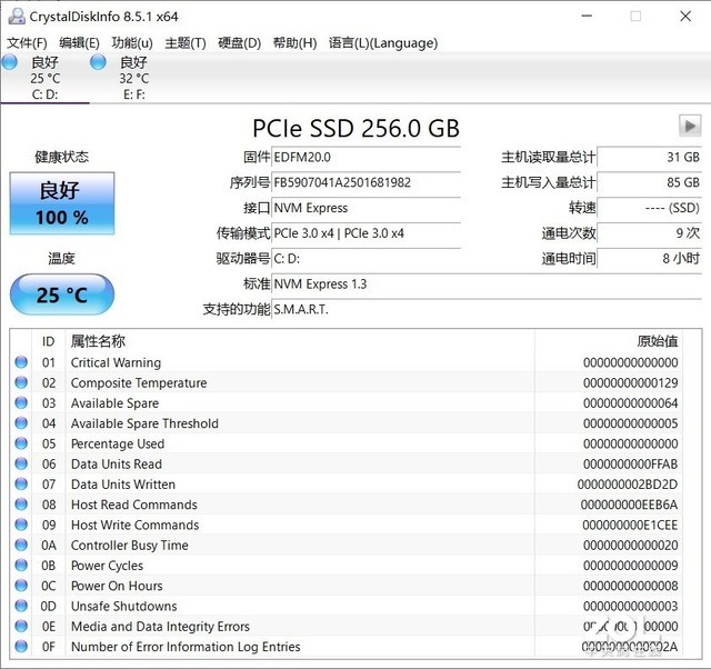 硬盘:256GB PCIe NVMe SSD+1TB HDD