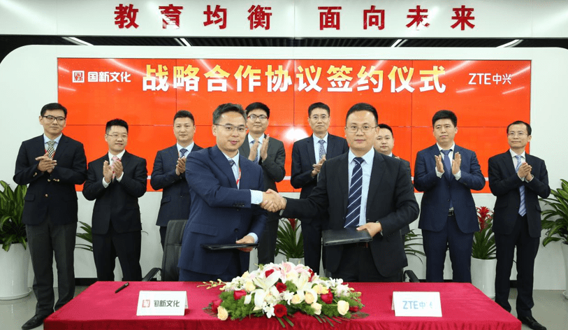 未来,中兴通讯将携手国新文化,坚持开放公平、优势互补、互利共赢、市场主导的原则,充分发挥各自优势,实现5G、云计算、大数据、人工智能、大视频、虚拟增强现实等技术与教育行业的全面融合,强强联手,积极推进“5G+教育”,打造完整的“线上+线下”教育教学生态系统,实现“教学空间”与“教育教学过程”全连接,坚持信息技术与教育教学深度融合的核心理念,助力教学信息化革命,为智慧校园赋能,全力助推国家教育信息化创新升级。