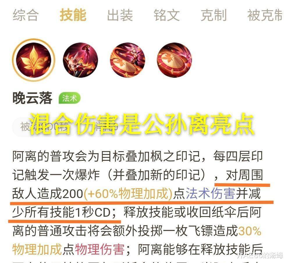 首先,公孙离是一个混合伤害型的射手,输出大约有1/4依赖于被动的魔法范围伤害。相较于与其他输出都为AD伤害的射手,混合伤害型射手的优点是在中后期即使不出穿透装备,也能对坦克或战士造成大量伤害。当前版本的坦克,都可以横着走路,相较于后羿,伽罗等后期射手,公孙离显然拥有更高的容错率与发展前景。