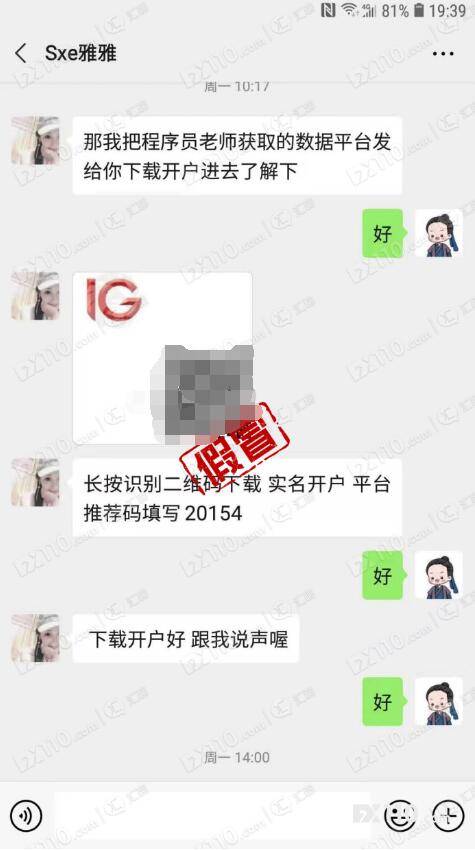 观望了一段时间后,汇友决定冒险一试。通过对方推荐的二维码,汇友在假冒IG的app开户入金3万元,并将其账户交由平台指定人员代操作。