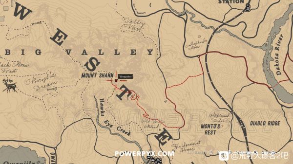 6.在West Elizabeth区域的北部,草莓镇北方的山上,如下图所示。