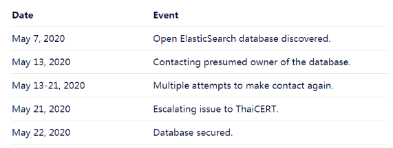 在确认泄漏事件后,Paine于5月13日向AIS提交了通知,但一周后仍然没有回音,随后,Paine便向泰国国家计算机紧急响应小组ThaiCERT报告了这一安全漏洞,该小组立即与AIS取得了联系,正在针对这一事件进行调查。在这不久后,该数据库便无法访问。
