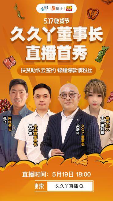 早在几天前,久久丫的快手账号上,发布了梁新科出镜录制的直播预热视频,视频里他称自己“久久丫小梁哥”,将在5月19日久久丫的19周年庆这天,在快手直播间等待老铁们,并随机发放礼品。