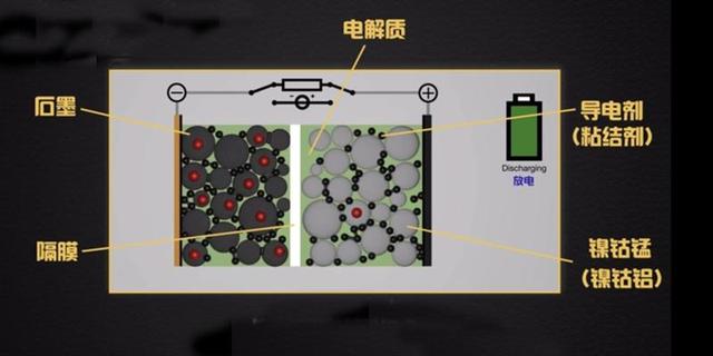 对于三元锂电池来讲,它的关键组成部分有正负极、隔膜和电解液。正极为锂的氧化物,如常见的镍钴锰酸锂、镍钴铝酸锂,负极材料为石墨,正负极之间使用多孔材质的隔膜进行隔离,防止二者接触,不过隔膜之间的空隙可以允许锂离子通过,而正是依靠锂离子在正负极之间的游走从而产生电流,实现电池的充放电。