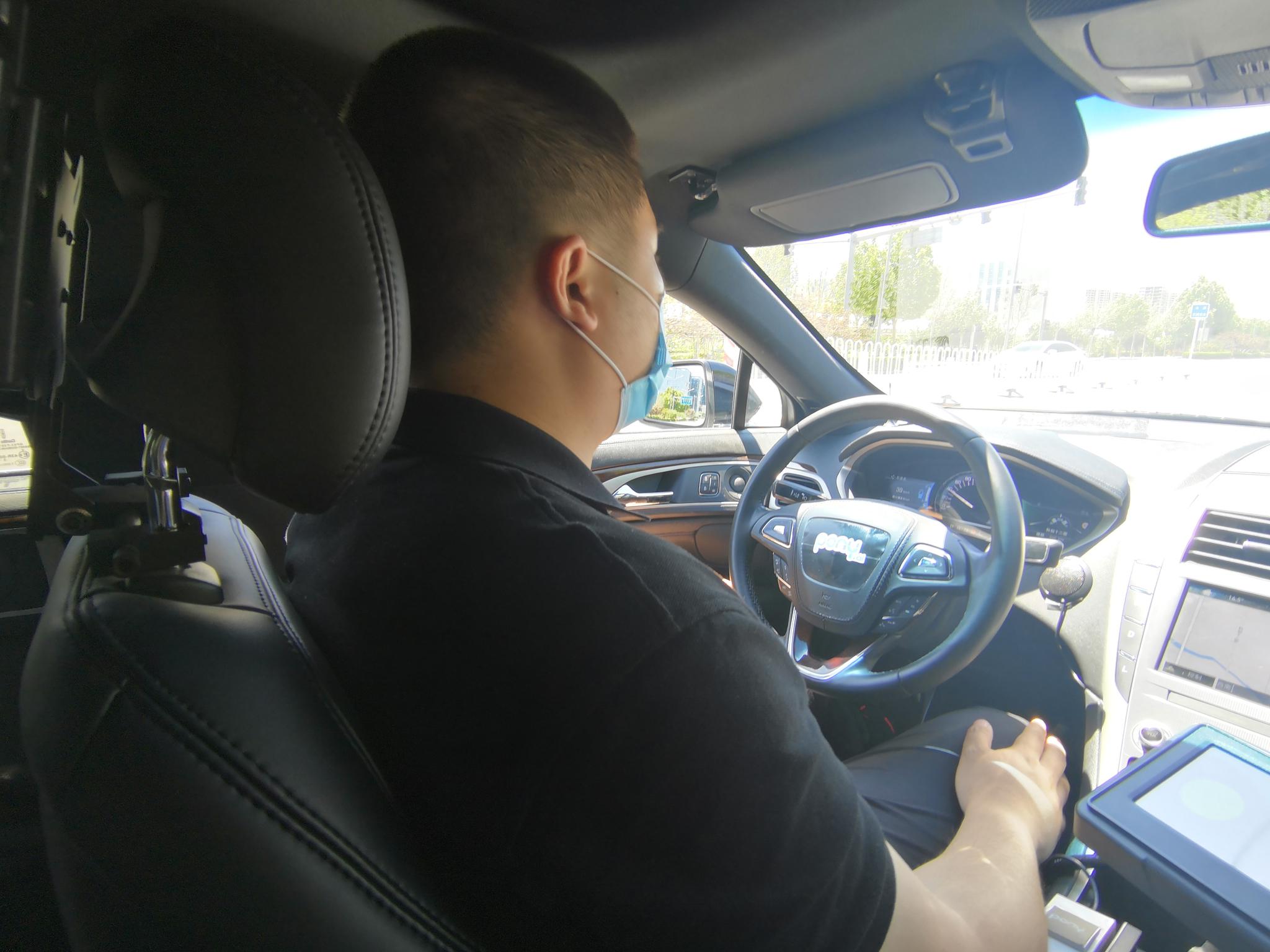 安全员将双手放开,让车辆自动行驶。