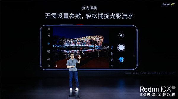 Redmi10X系列针对年轻用户的喜好,推出6款流光相机。包括:穿梭人群、霓光夜幕、行云流水、创意光绘、璀璨星空、浪漫星轨。用户无需专业的参数设置,就能捕捉光影流水,轻松拍出创意长曝光大片。