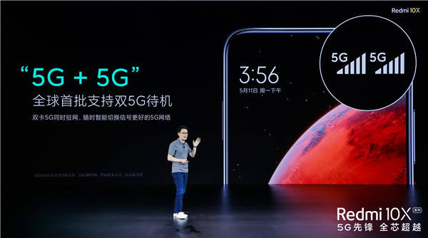 Redmi10X系列采用集成式5G方案,支持SA+NSA双模,覆盖主流5G频段。同时,它还是全球首批双5G待机手机,实现了双5G同时驻网,能直观看到两张5G卡的信号状态,更可通过Redmi自研的智能双卡切换功能,让手机时刻处在高速5G网络下。