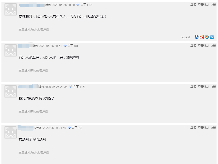 很多小伙伴表示:“或许正是那句话“我预判了你的预判”。当然这一局游戏中霸哥的确玩的难受,对面的上单狗头还是比较克制石头人这样的上单的,因为狗头被动可以回血,所以石头人的消耗手段就比较的“匮乏”了。霸哥只能小反甲+两个红水晶在上路混线,找好队友打团时机,TP下去开团。毕竟,石头人这个英雄上分还是很稳定的,R技能开团很简单,装备可以AP也可以AD,当队友优势,就能无限的帮助队友滚雪球。这也是为什么现在很多中单玩家也喜欢玩中单石头人的原因,小规模打团,石头人配合打野能瞬间让敌方减员。