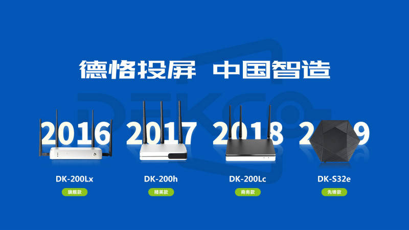 德恪USB一键无线投屏解决方案旗下有四款产品:商务款【DK-200LC】,精英款【DK-200H】,旗舰款【DK-200LX】,先锋款【DK-S32E】,其中先锋款【DK-S32E】是在今年9月1号发布的,先锋款的上市,是为了给用户提供更多样的无线投屏方案选择,致力于打造一款“超高性价比"的爆款产品。德恪从未停止脚步,只为让更多的用户会议室都能用上无线投屏方案。