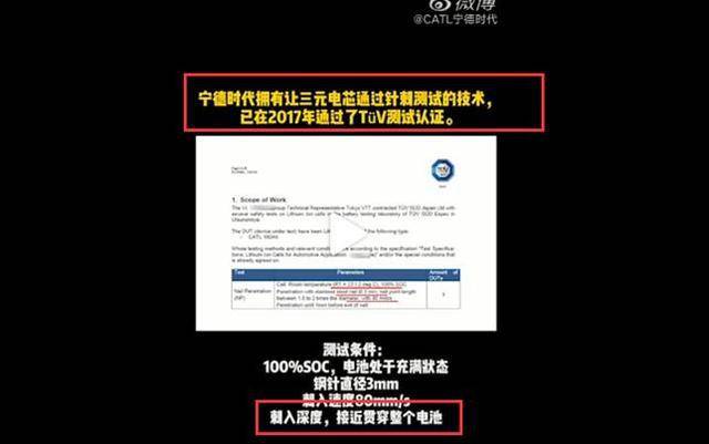 但视频发出后,也引起了部分网友的不满,针刺试验的目的是让针贯穿极板,以便使电池短路,以便观察电池的热失控情况。测试的对象应该是电池的电芯,而非外部包裹的电池包,有人认为宁德时代偷换概念。
