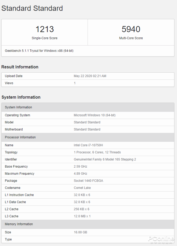 先来看看我们测试中目标笔记本的基本情况。这次测试的笔记本机械革命深海泰坦X3-S搭载了十代酷睿处理器i7-10750H,作为一款6核心十二线程的处理器,i7-10750H拥有2.60GHz的基础频率,以及5.0GHz的睿频,还有着12MB的三级缓存。在Geekbench的基准测试中,它取得了1213分的单核分数,以及5940分的多核分数。