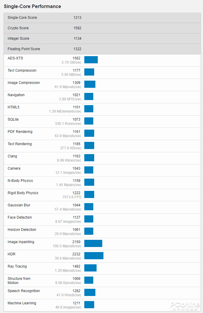 而且在Geekbench针对办公和多媒体的单项测试中,它也取得了优秀的单核与多核成绩——无论是与网页加载息息相关的HTML5测试,还是与日常办公相关的PDF与文字渲染相关的测试,其分数都相当不错。