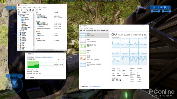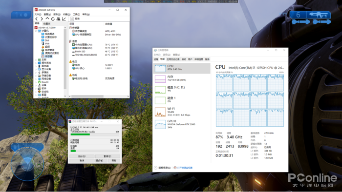 当然,既然都拿i7-10750H来测试了,当然是考虑到游戏游玩当中的种种情况了——一边游戏一边解压缩/拷贝文件,或是上不同的网站查询攻略、资料等可以说都是日常生活当中再平常不过的事情了,但一些朋友的电脑却因此开始卡了怎么回事?不要慌,正如前面所说的,这并不是你电脑中病毒的表现,而是这些“平常”的活动其实对CPU的负载压力其实也很大。
