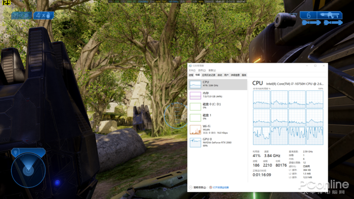 而这在搭载了十代酷睿i7-10750H的机械革命深海泰坦X3-S上则表现为了游戏帧率下跌45fps左右的情况——但即便如此,游玩MCC的体验仍然是在80 fps左右水平线上的,非常的流畅与舒服。