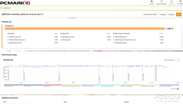 再加上针对办公环境测试的PCMark 10对其优秀性能的肯定——8841分的生产力评估分数,让我们产生了一种“它在接下来的测试当中必然不会有一丁点儿压力”的感觉。