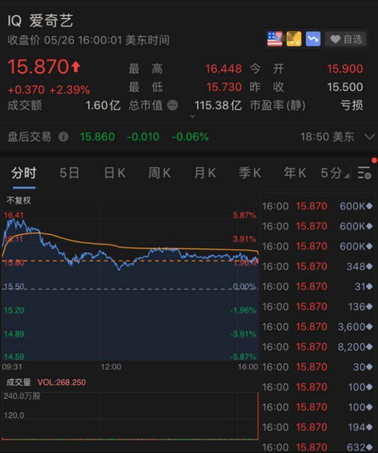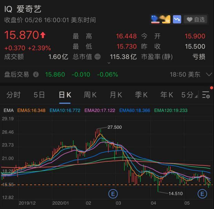 而爱奇艺的股价随着美股崩盘持续下跌,4、5月反弹乏力,今年以来已经下跌了24.82%。
