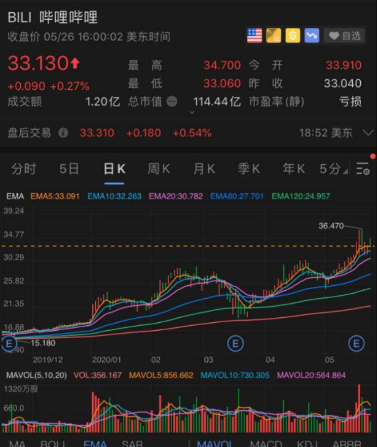 今年以来,B站的新年晚会、《后浪》不断出圈,再加上财报用户数据超越市场预期,B站的股价已经涨近80%。