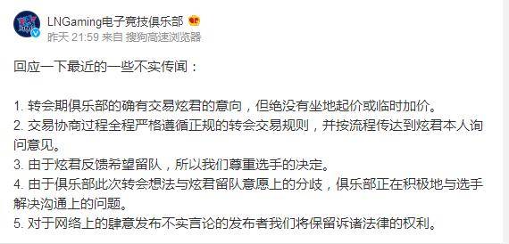 其实大家的理解也差不多,基本上和上边那个比较详细的说法一致。圣枪哥想留队,而队伍想要卖掉他。用LNG官博的术语来说,那就是:俱乐部有意向交易炫君!