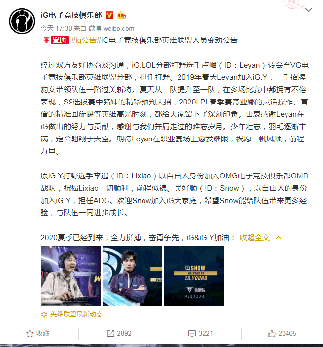 乐言离开IG加入VG,有谁注意到他发微博的表情?网友:王思聪没看错人!