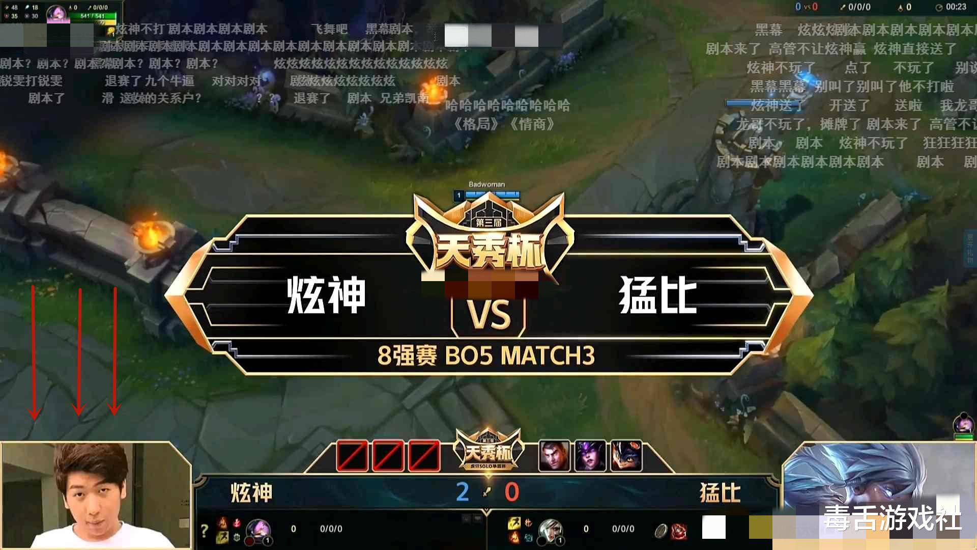 而这个比赛已经是来到了8强赛,精彩程度也是不言而喻,而第一场就是炫神和猛比的对决。炫神这名主播,经常看直播的观众应该比较了解,虽然比较喜欢“口嗨”,但是也是有一大批的忠实观众,他的一手“爆杀流杰斯 ”也是比较出名。而且虽然他的英雄联盟游戏分段虽然不算高,但是和一群千分王者solo起来也不占下风,并且从一开始走到八强更是未尝一败。