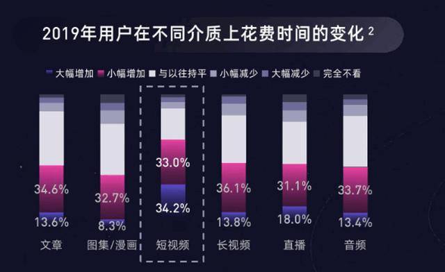 2019年,用户在短视频和直播上花费的时间明显增加。图源:新榜《2020年内容产业年度报告》