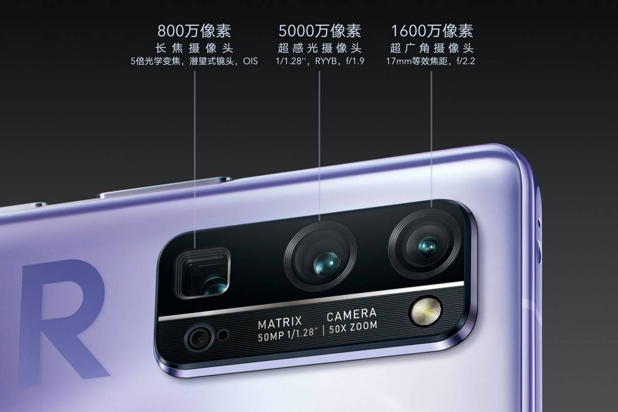 荣耀30 Pro+拥有顶级的三摄影像系统,DXOMark得分高达125分,仅次于华为P40 Pro的128分。5000万像素超感光主摄,IMX700是目前业界最大传感器,达到1/1.28英寸;800万像素5倍潜望式长焦镜头配有双结构OIS光学防抖,支持5倍光学变焦,10倍混合变焦和高达50倍的数字变焦,拥有强悍的长焦能力;1600万像素超广角摄像头提供优秀的超广角视角体验,在珠峰这种天地广阔的场景尤能发挥出色实力。