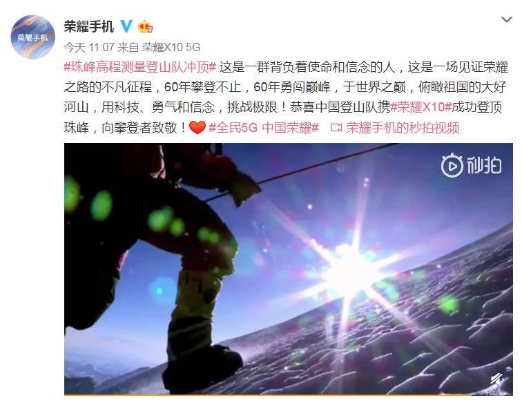 此次成功冲顶世界之巅,不仅充分展现了荣耀身体力行用科技赋能人文、赋能青年的努力,还重塑了前沿科技与人文精神之间一种全新的互动关系。5G刷新世界高度,荣耀30系列影像见证中国脚步。荣耀手机本次全程参与再测珠峰之旅,是品牌焕发自身新生命力的重要象征。而协同测量登山队再攀巅峰,更是用行动证明中国品牌开启了“新荣耀路”。 游戏网