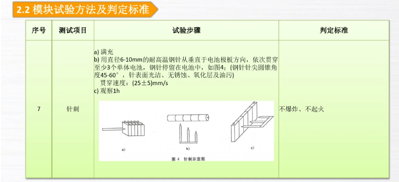 对于针刺测试,在国家相关的政策GB/T31485-2015中,是包括了针刺测试这一项的。