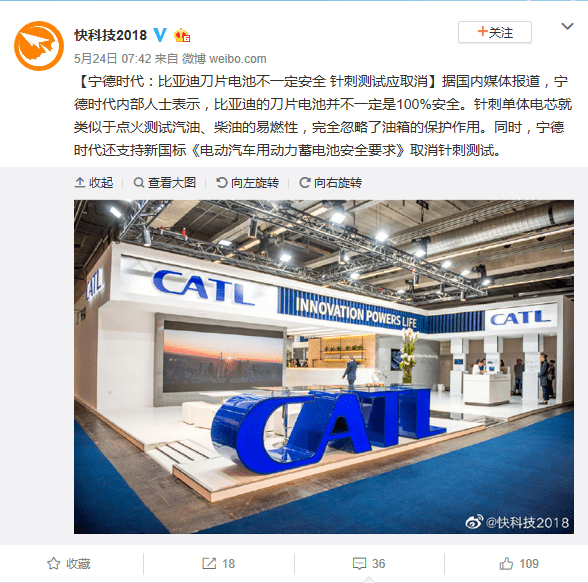 5月22日、23日,宁德时代连续发布两个视频,表示自己早已掌握三元锂电池通过针刺测试的技术。