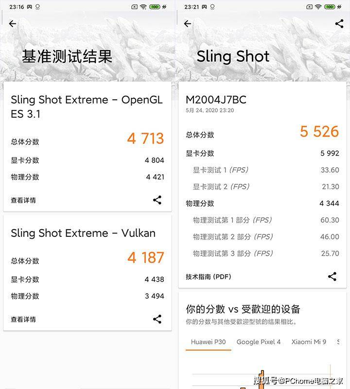 此外,为了测试Mali-G57 MC5 GPU的性能,我们使用3D Mark的Sling Shot Extreme和Sling Shot为Redmi 10X Pro跑分,Redmi 10X Pro在这两项分别获得了4713分和5526分。这样的跑分成绩已经与骁龙865旗舰机差距不大了,与同价位机型相比优势非常明显。