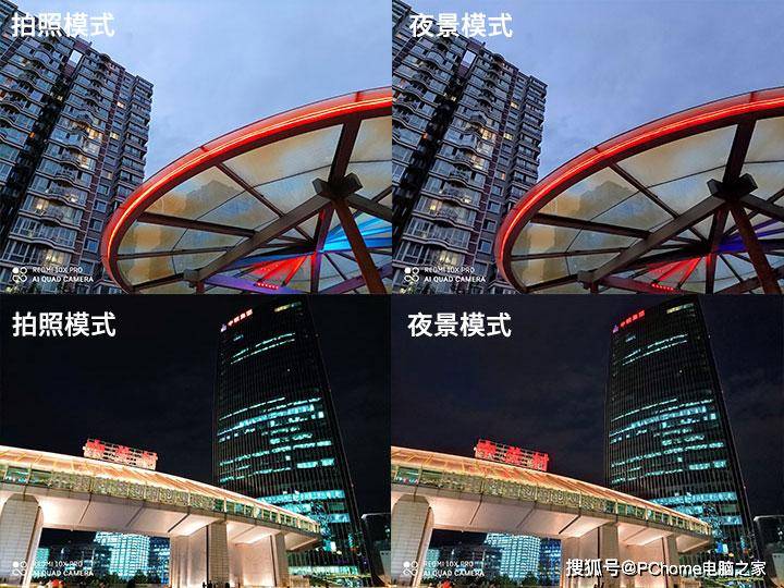 在夜间,等效尺寸1.6μm的单个大像素亦可带来更强的单个像素进光量,保证夜景曝光充足。搭配长曝光夜景模式,Redmi 10X Pro可在充足曝光基础上做到“高光不过曝、暗部不欠曝”,有效压制炫光并提亮暗部,同时配合多帧降噪输出纯净的长曝光夜景大片。
