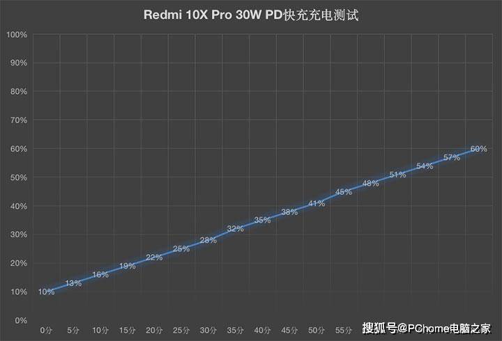 我们从10%开始进行充电测试,1小时充到48%,2小时充到84%,最终在第160分钟充满。这个成绩乍一看并不出色,但乘以4520Mah大容量电池后基本就能对的上33W PD快充的水准了。这样看来,Redmi 10X Pro的性能与续航表现还是非常优秀的,足以支撑其性能的持续稳定输出。