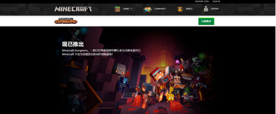 首先,打开《Minecraft Dungeons》官网:https://www.minecraft.net/zh-hans/about-dungeons
